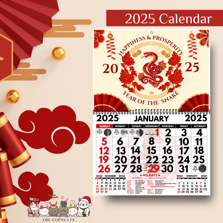 2025 CHINESE CALENDAR YEAR OF THE SNAKE CALENDAR A3 SIZE WITH METAL