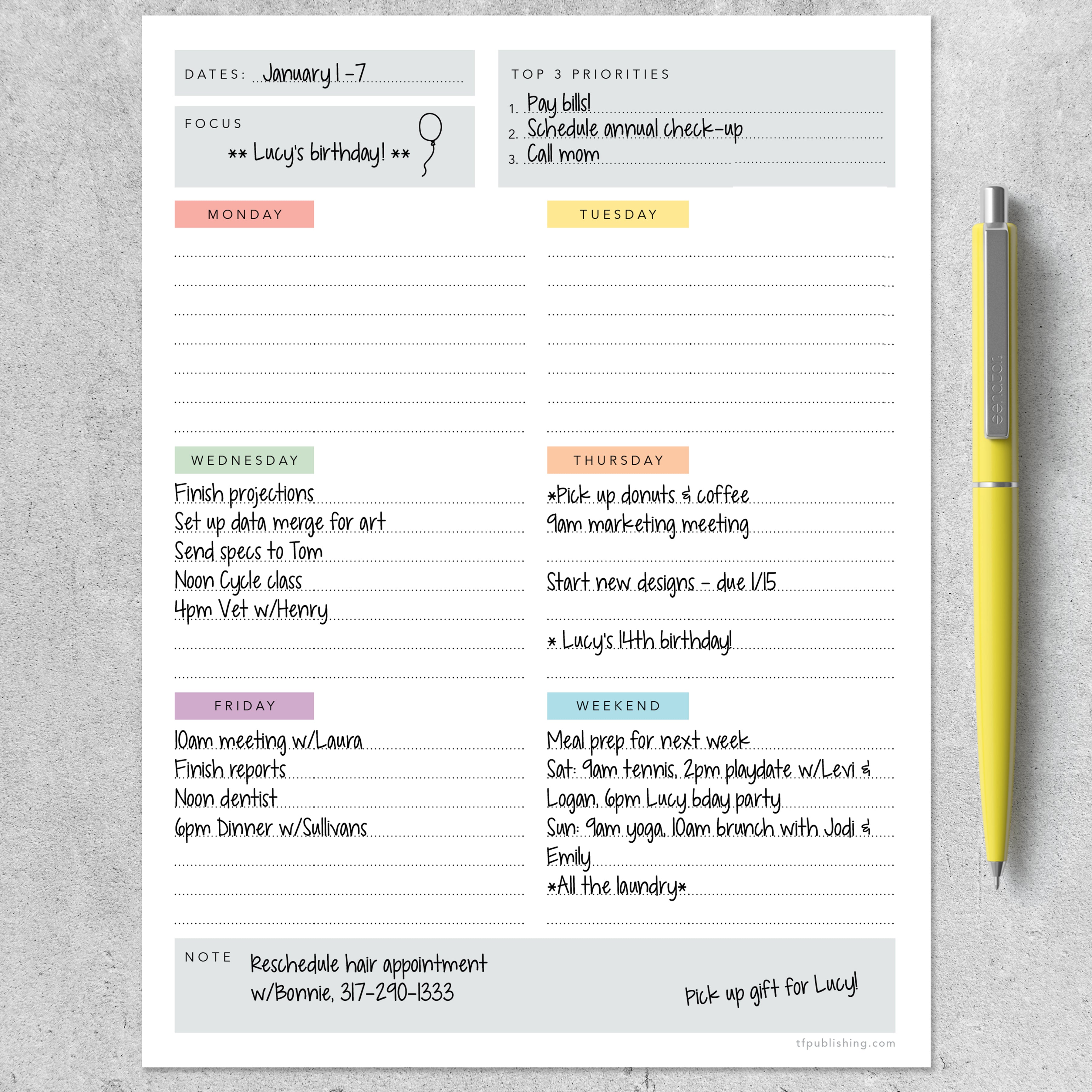 Simply Weekly Color Coded Task Pad Magnetic TF Publishing