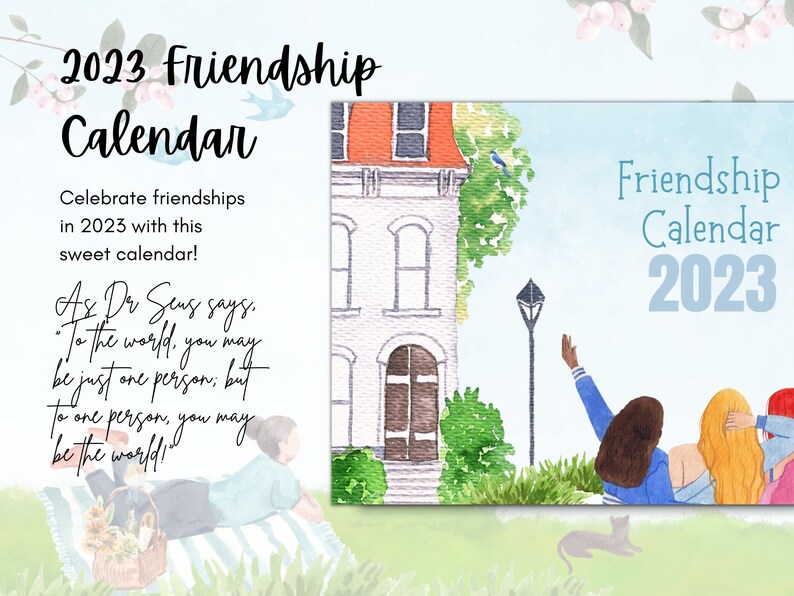 Friendship Calendar 2023 Printable Calendar Instant Etsy