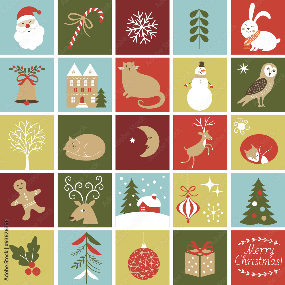 Set Icons for create Advent Calendar Christmas Illustrations and