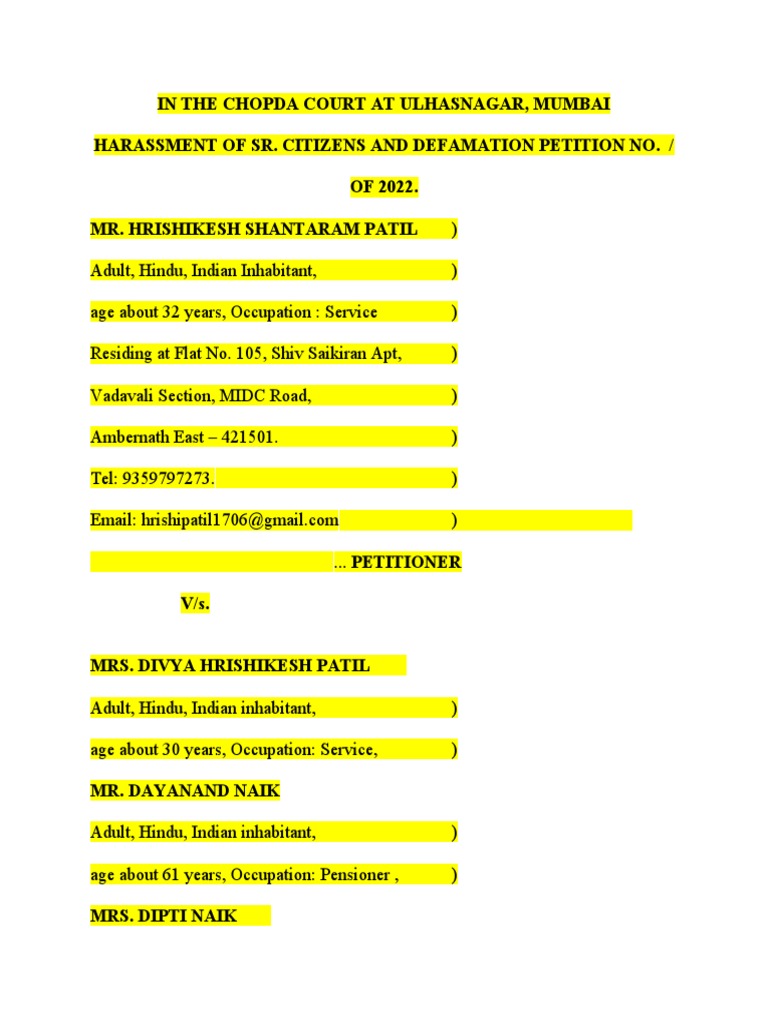Draft Petition at Chopda Court PDF Bail Complaint