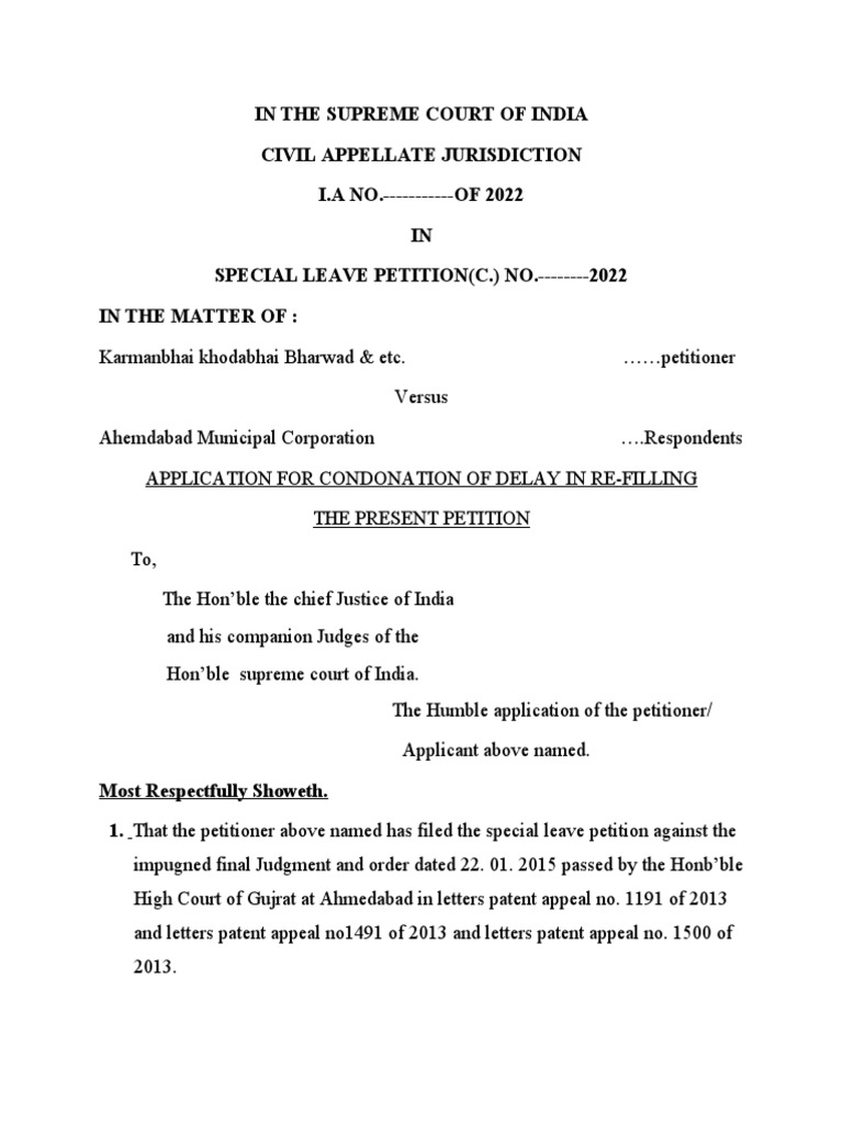 application for condonation of delay in re filling the present petition