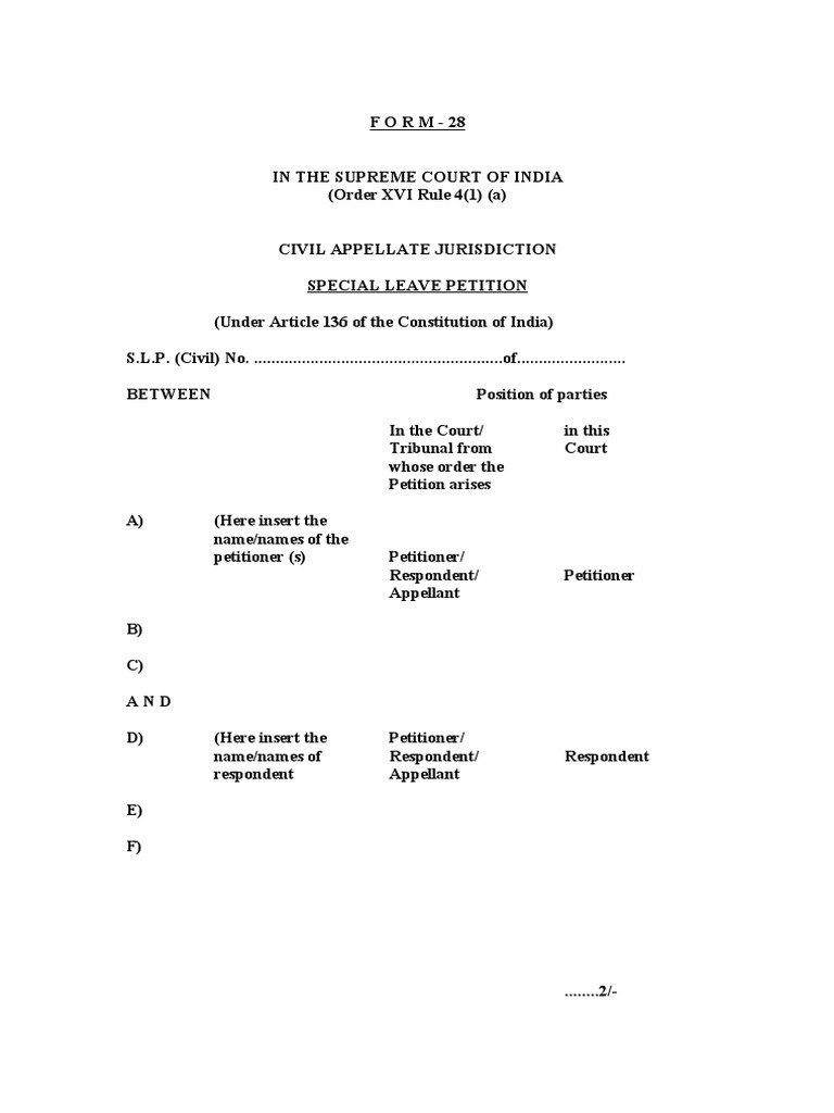 Attached PDF Is Draft Format of Special Leave Petition PDF Supreme