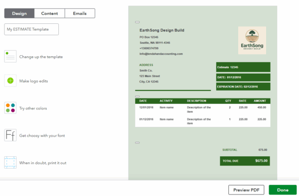 Quickbooks Online Estimate Templates
