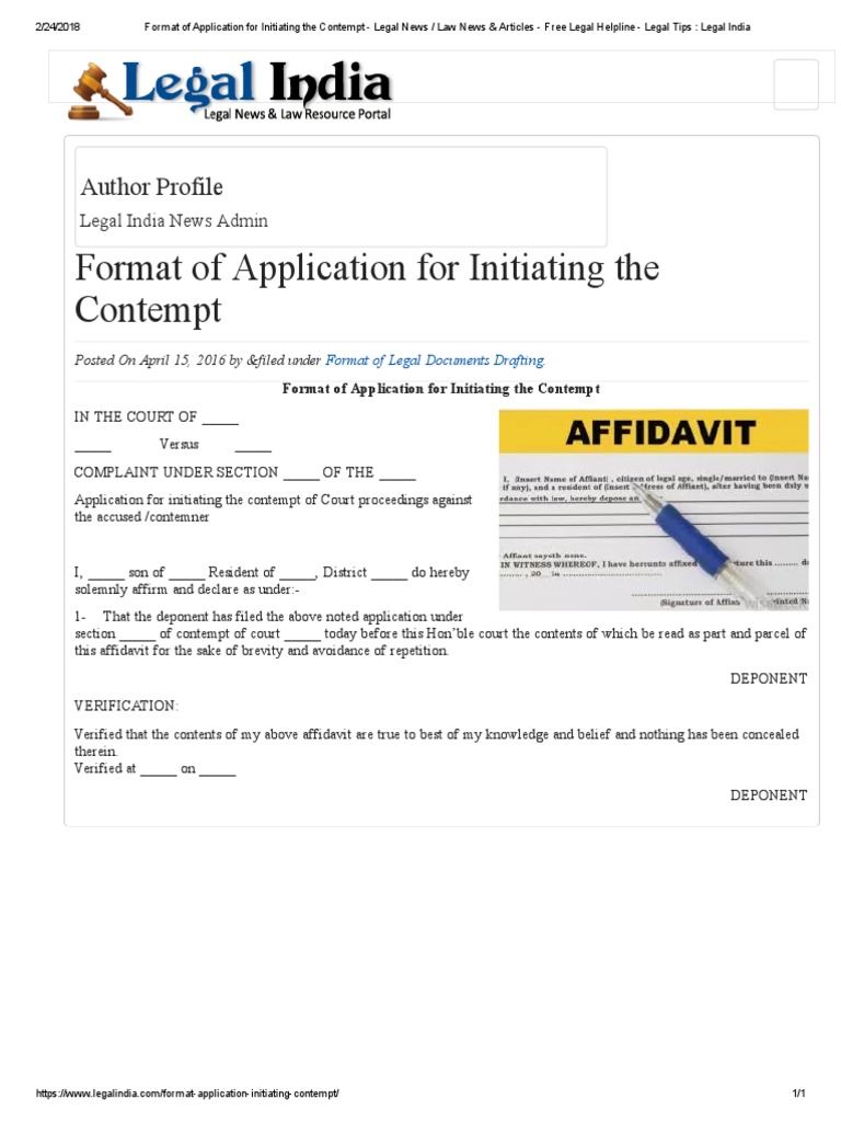 Contempt application in 145 Cr P C PDF Contempt Of Court Affidavit