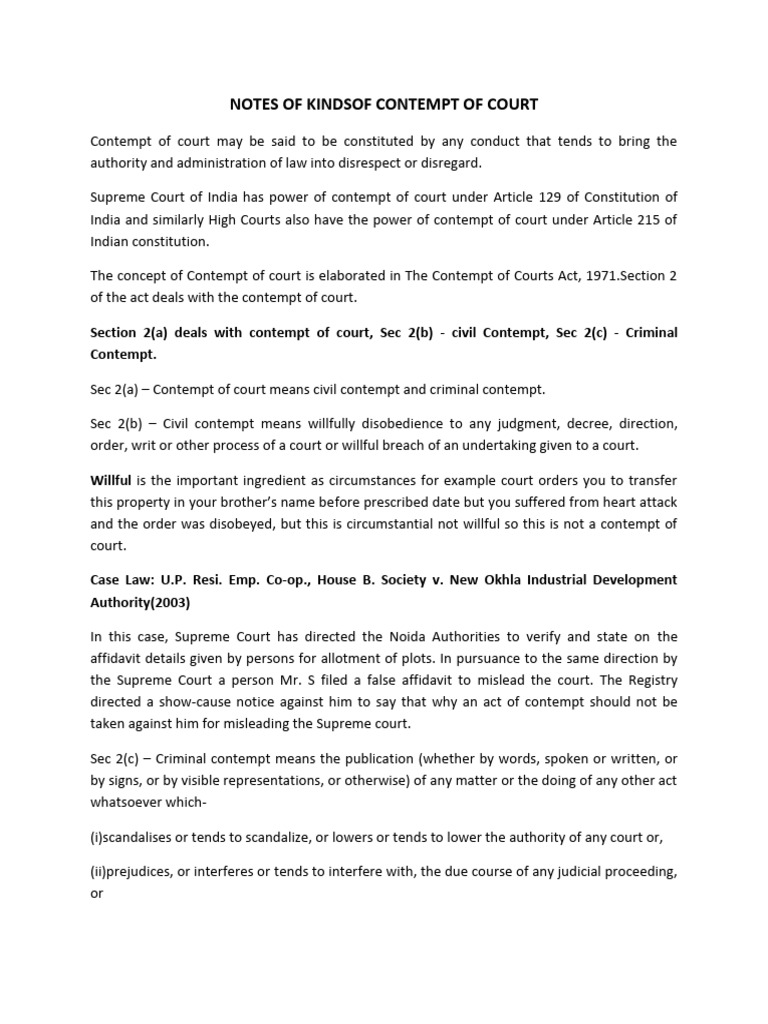 Notes of Kindsof Contempt of Court Download Free PDF Contempt Of