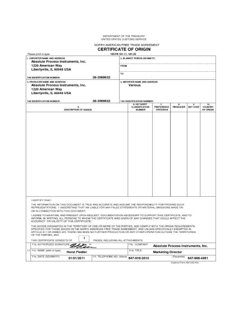 Certificate of Origin PDF