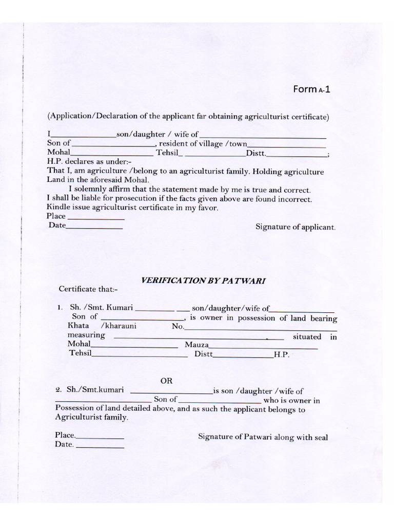 Fillable Online Agriculture certificate form hp pdf Agriculture