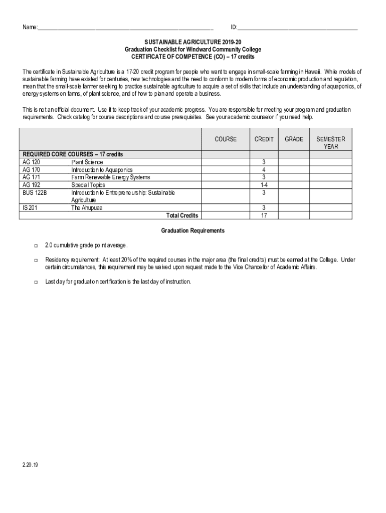 Fillable Online SUSTAINABLE AGRICULTURE Certificate of Competence 2019