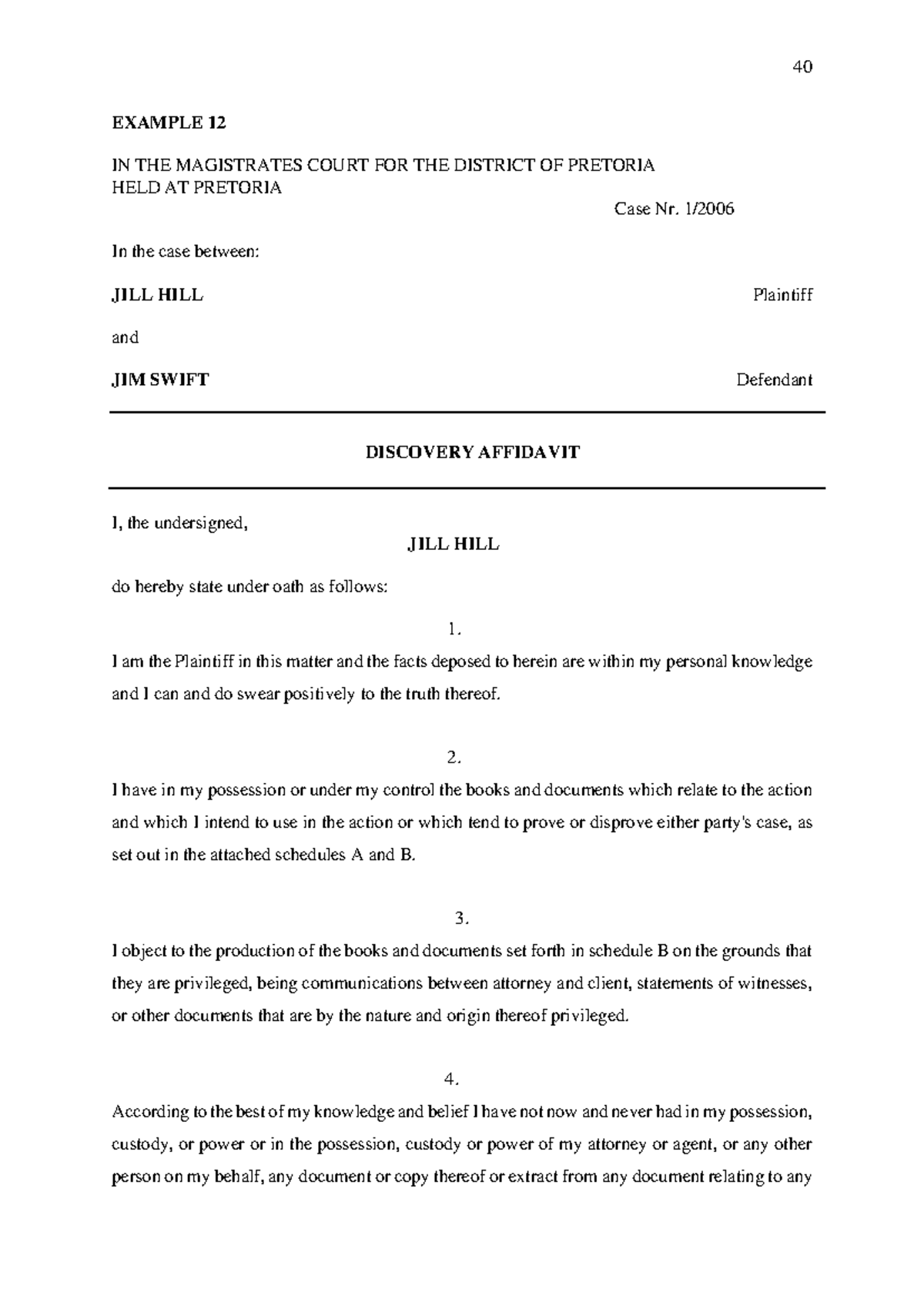 Discovery Affidavit Example in Magistrates Court Case Nr 40 Studocu