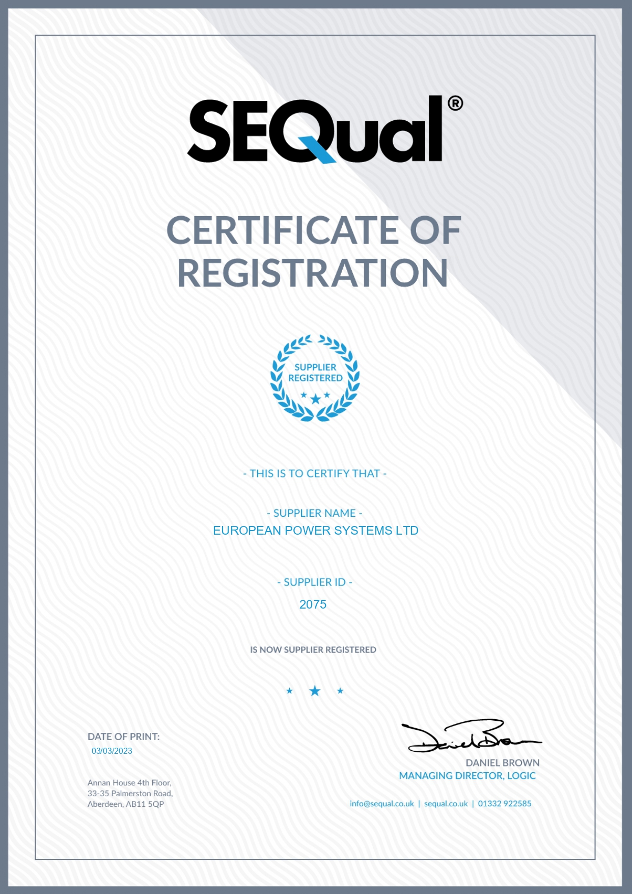 We are pleased to announce that we are SEQual verified European Power