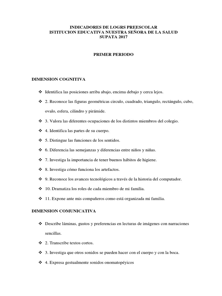 Indicadores de Logros Preescolar 2017 PDF Dibujo Educación de la