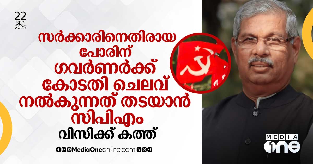 സർക്കാരിനെതിരായ പോരിന് ഗവർണർക്ക് കോടതി ചെലവ് നൽകുന്നത് തടയാൻ സിപിഎം