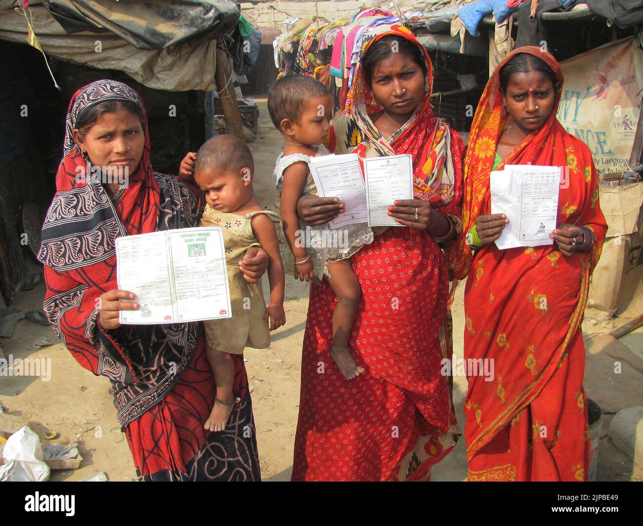 Mothers holding polio vaccine certificates Stock Photo Alamy