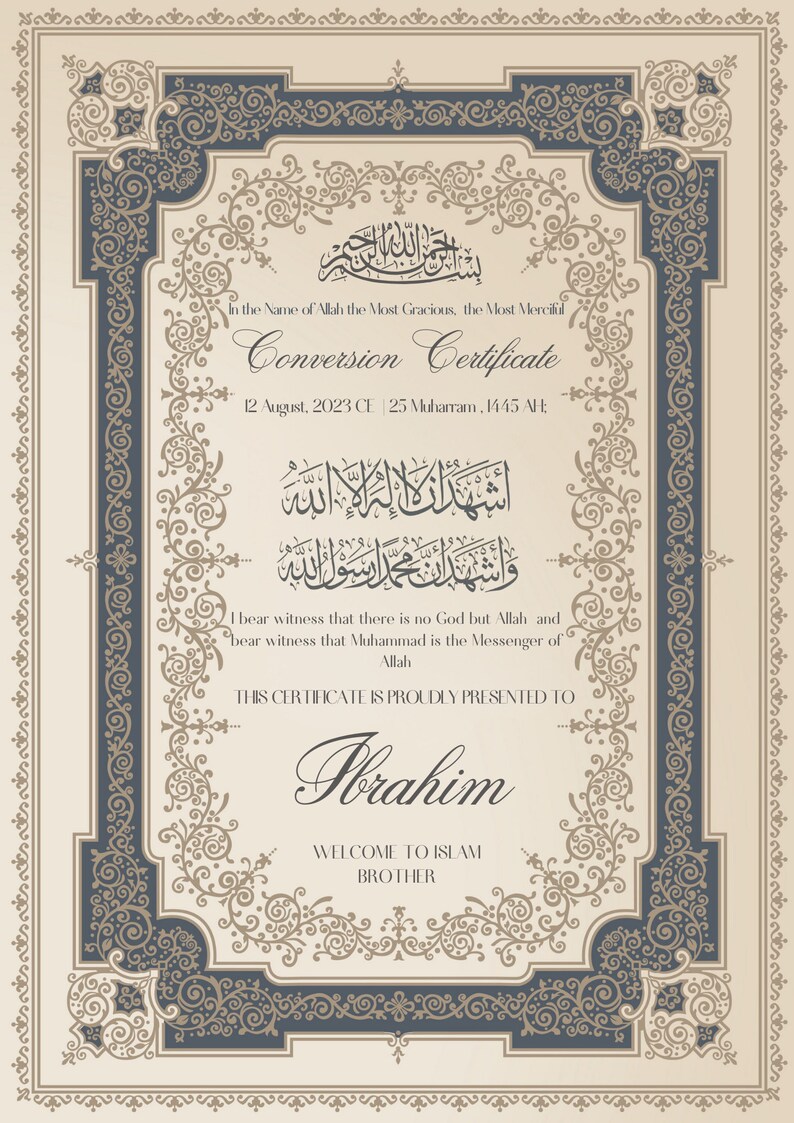 Arabesque Vintage Shahada Certificate Islam Conversion Certificate
