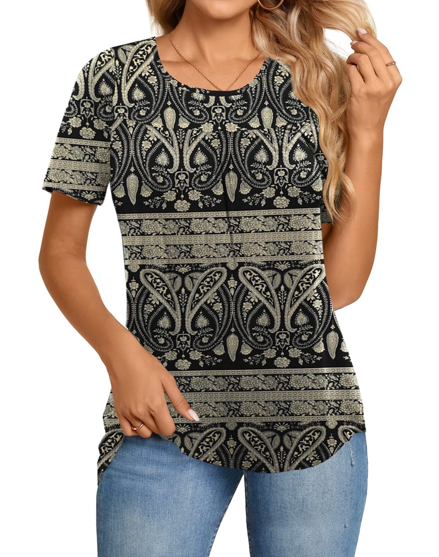 LETDIOSTO Women #39 s Plus Size Tops Short Sleeve Shirts Lace Pleated Tunic