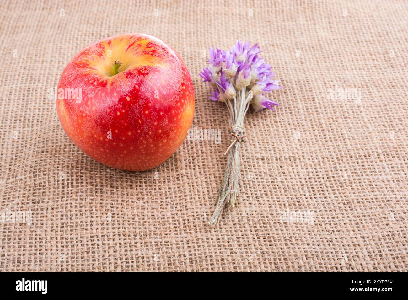 Tiny flower bouquet beside an apple on canvas Stock Photo Alamy