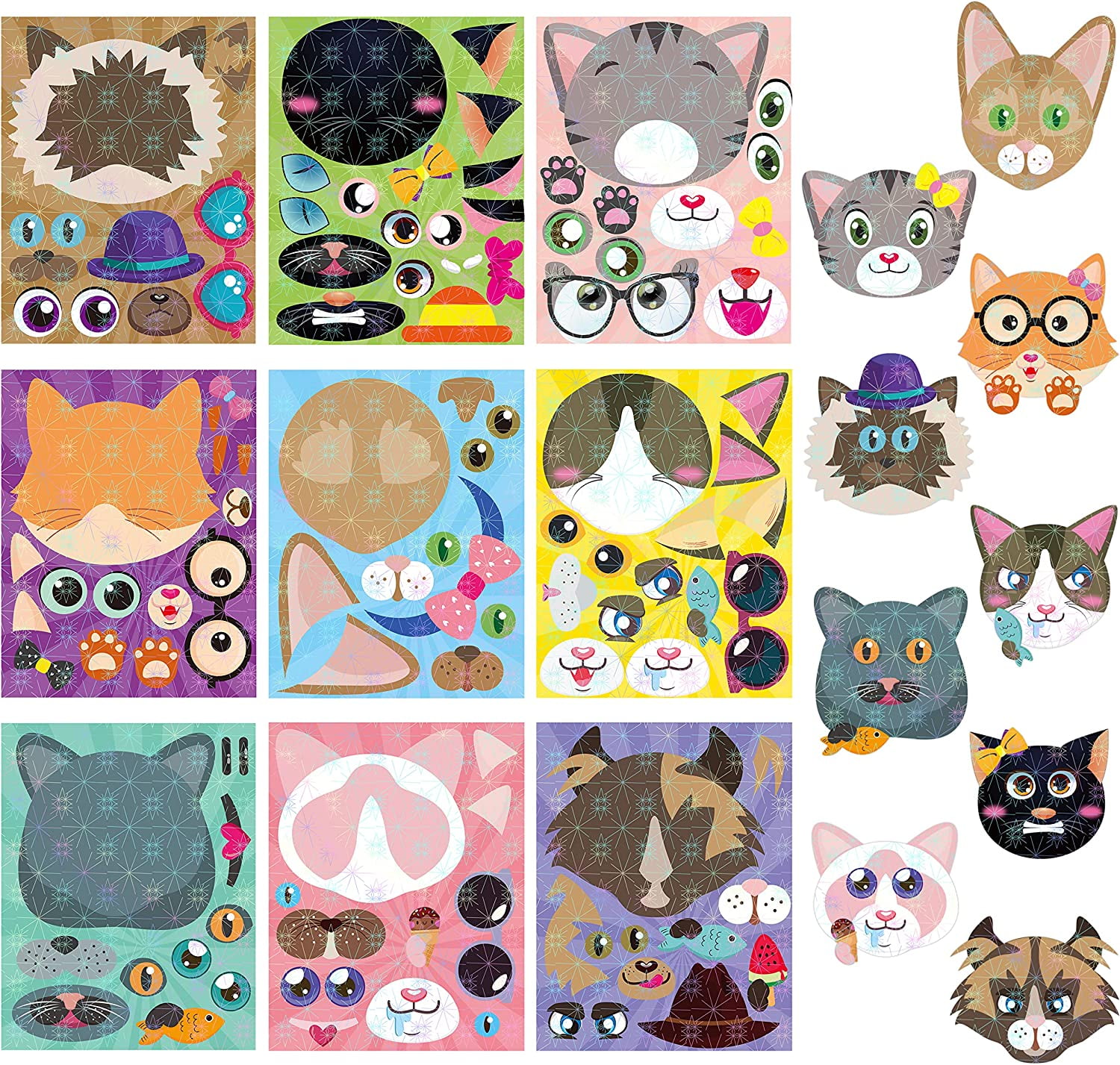 45Pcs Cats Make a Face Stickers Make You Own Cats Holographic Stickers