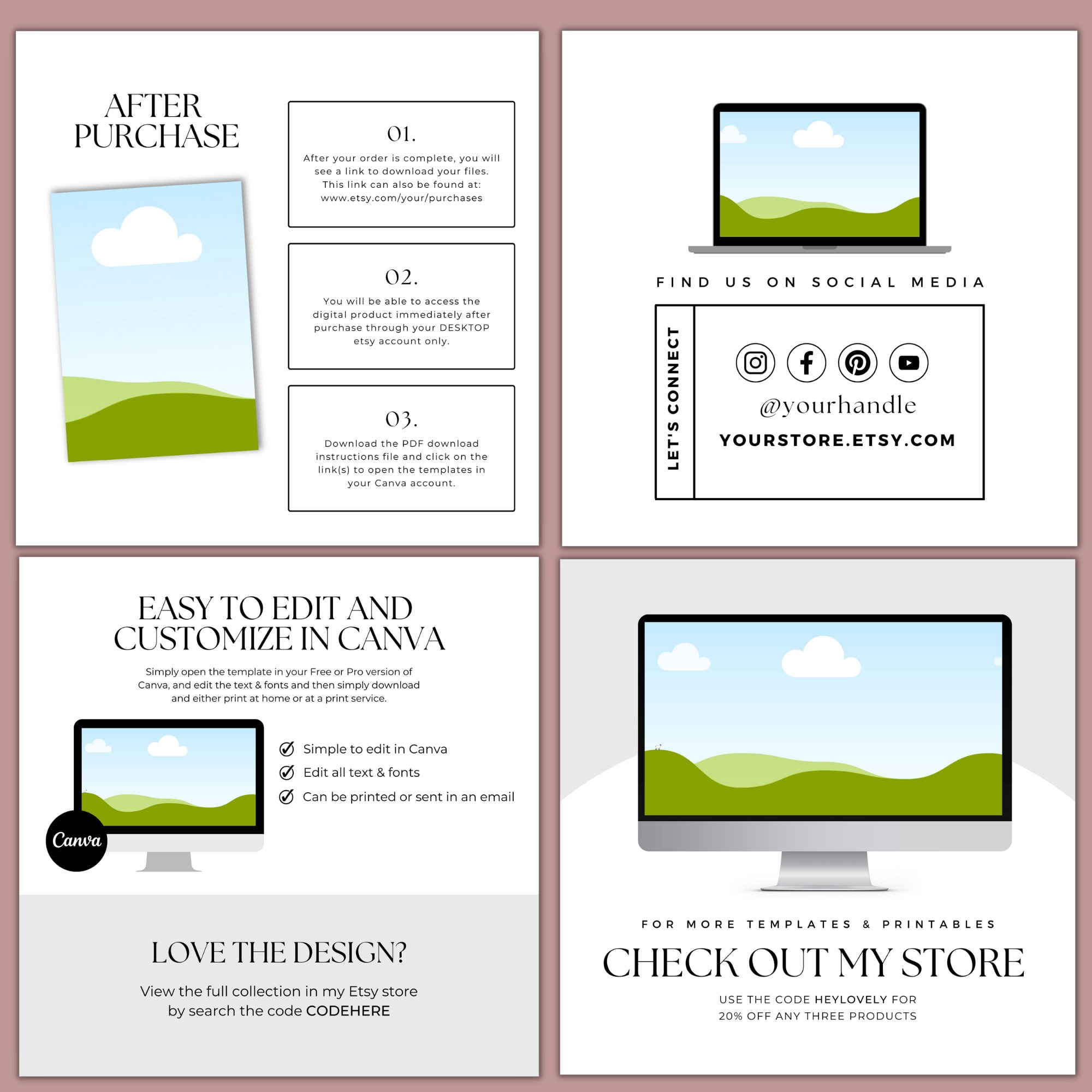 Etsy Mockup Templates Digital Downloads Canva Etsy Store Listing
