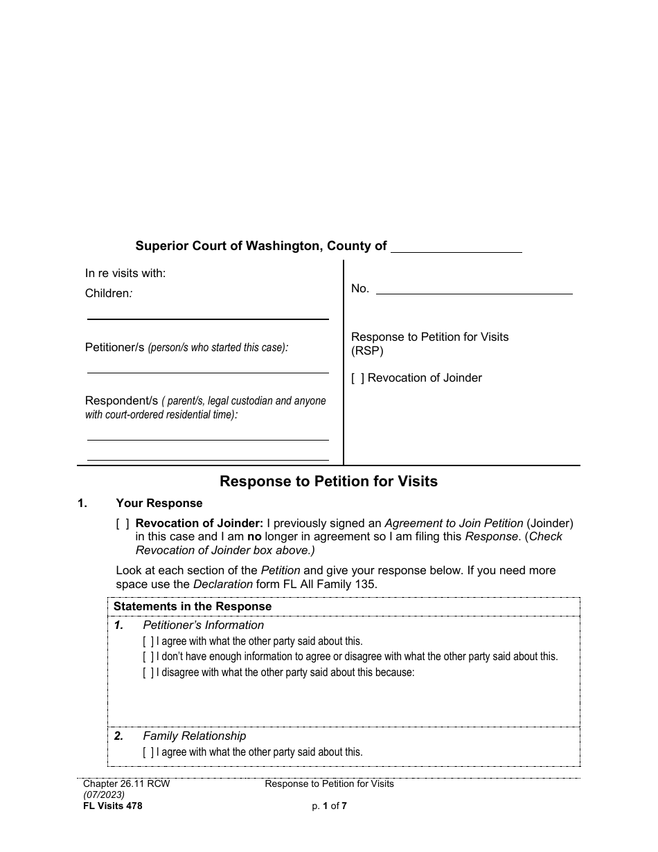 Form FL Visits478 Download Printable PDF or Fill Online Response to