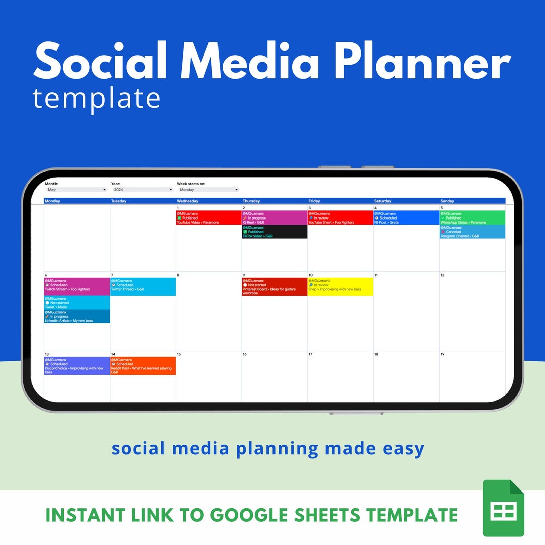Social Media Calendar Template Social Media Content Planner Marketing
