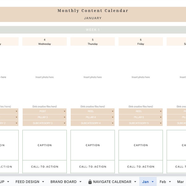 Social Media Content Calendar Planner Template Instagram Content Plan