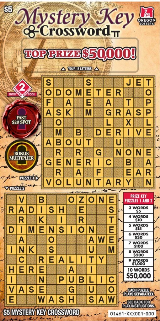Mystery Key Crossword Lottery Scratch Tickets Oregon Lottery