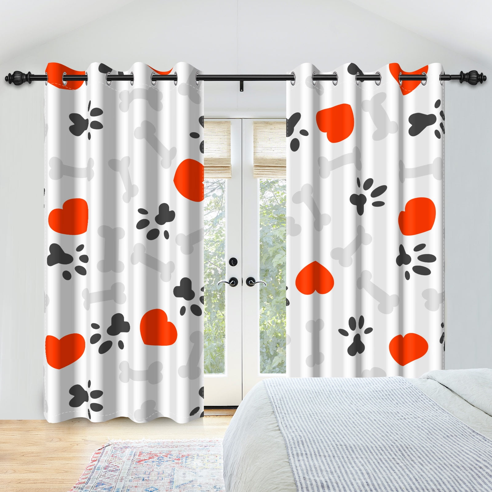 2pcs/set Dog Paw Print Window Curtain Abstract Graffiti Footprint