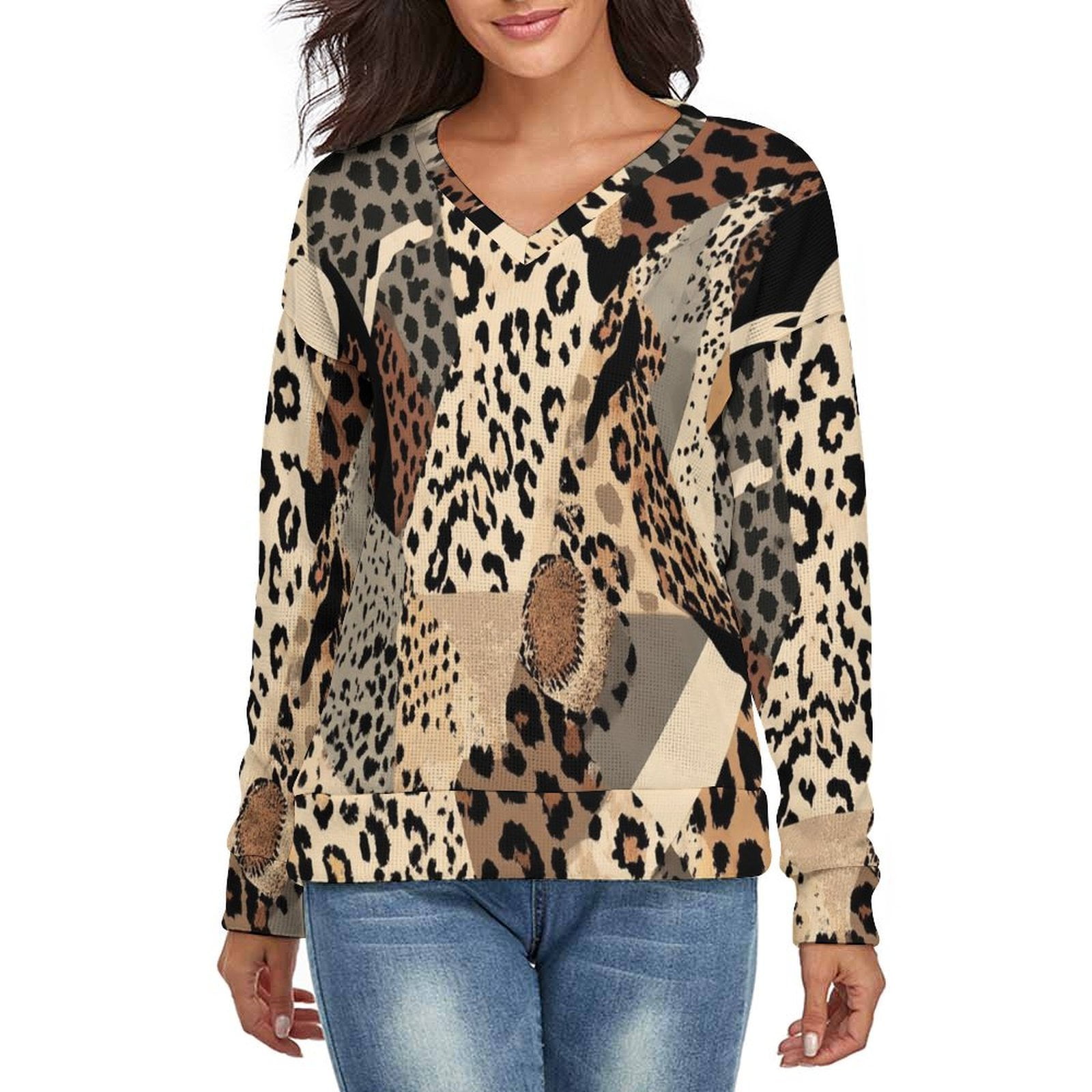 Abstract Leopard Print Collage Pattern V neck Sweater Winter Clothes
