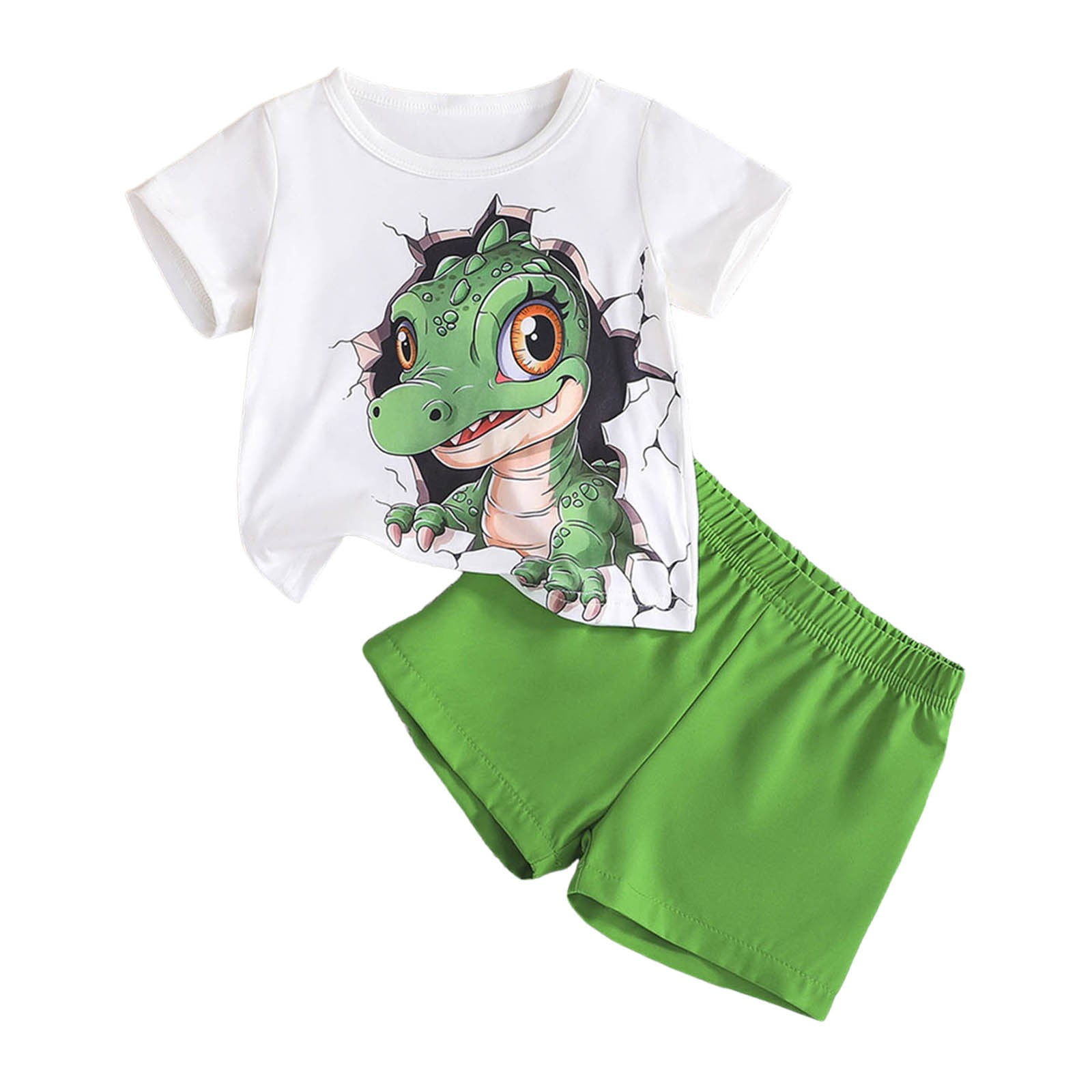 CUZIBR Children Summer New Cartoon Dinosaur Print T Shirt Pants Trendy