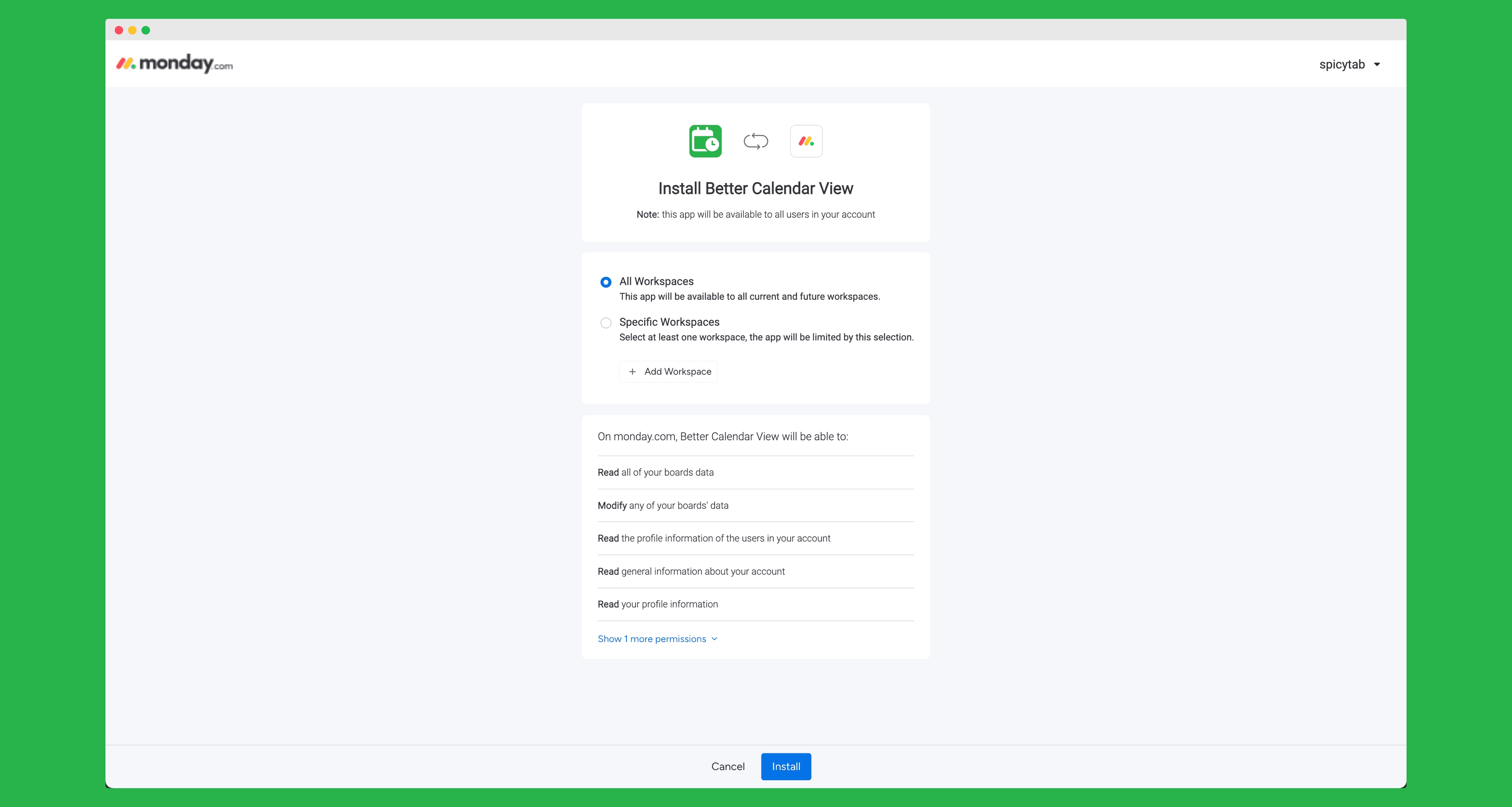 Better Calendar View Documentation: Installation SpicyTab WorkOs apps