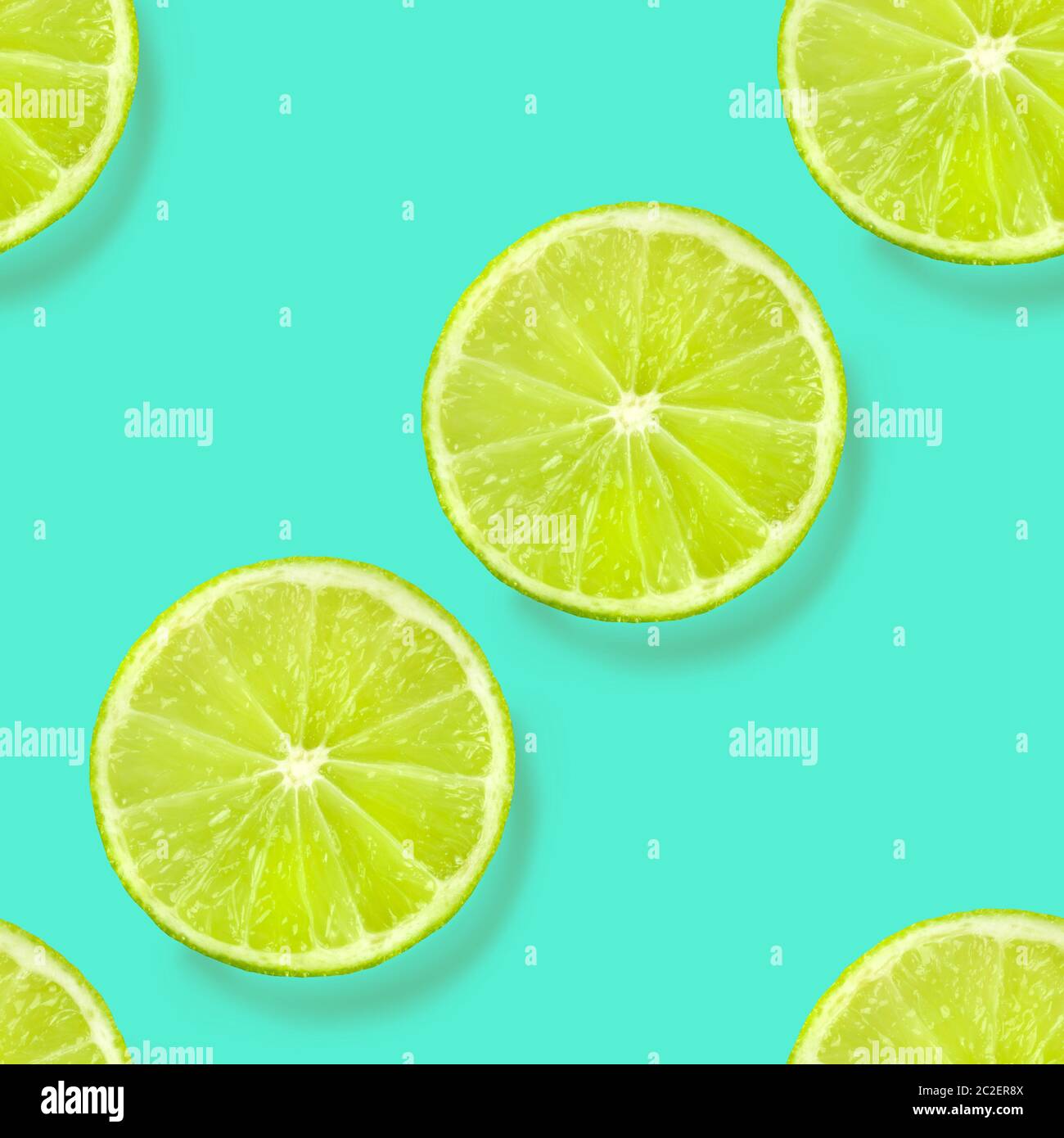 A seamless limes pattern on a vibrant teal blue background a fruity