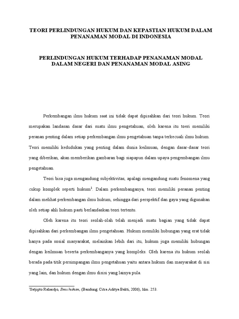 Teori Perlindungan Hukum Dan Kepastian Hukum Dalam Penanaman Modal Di