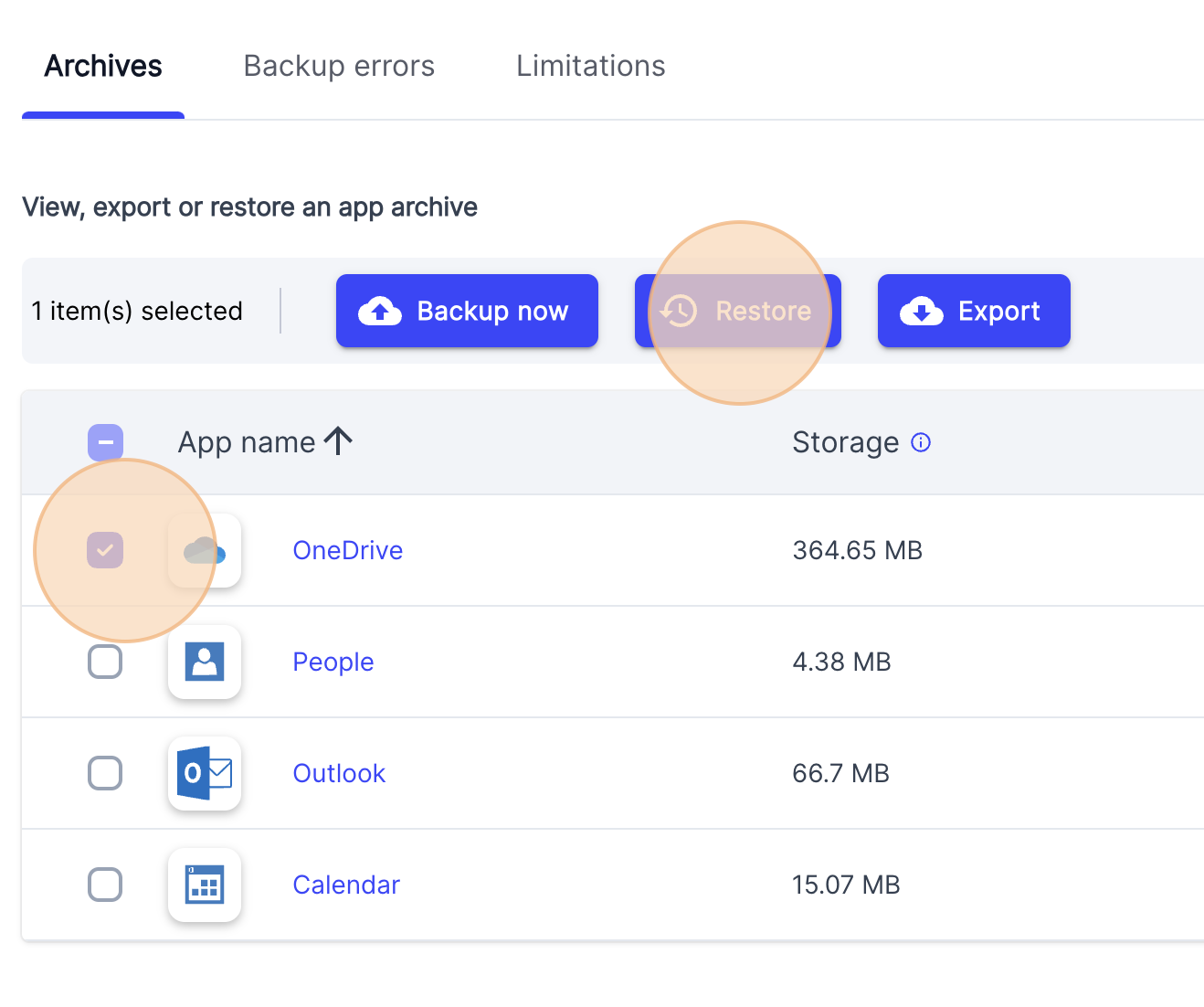 How to restore an entire application: Mail (Outlook) Drive (OneDrive