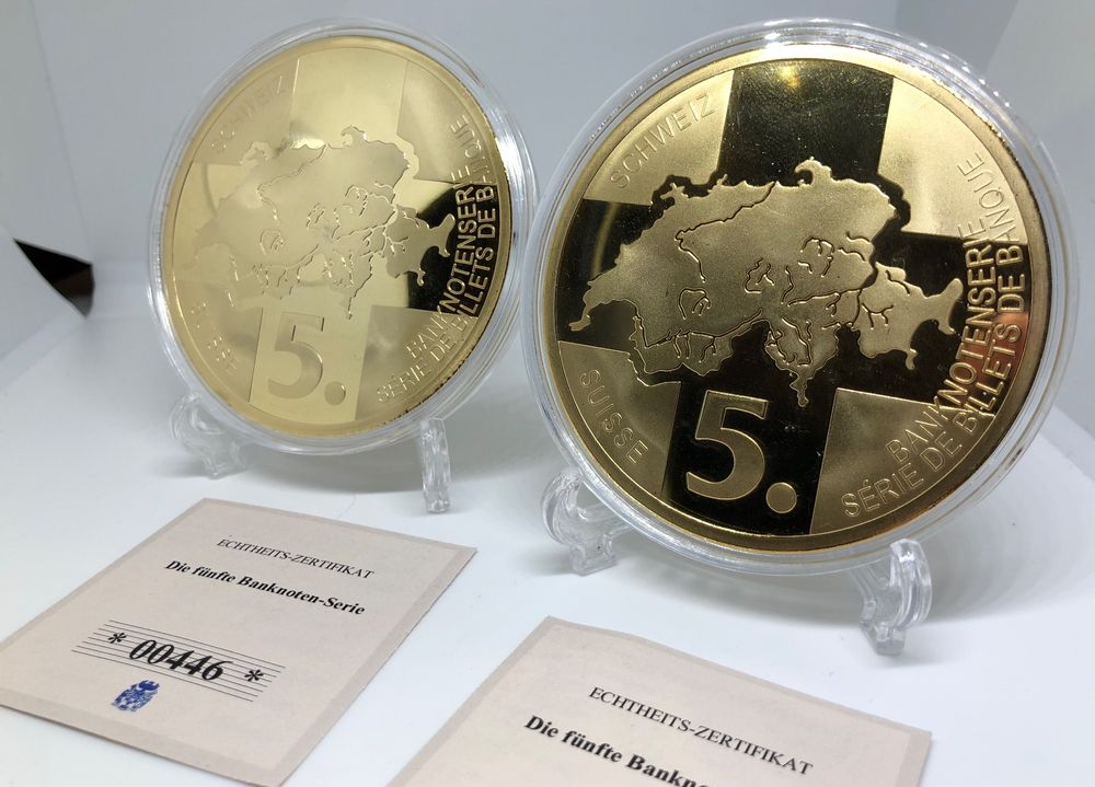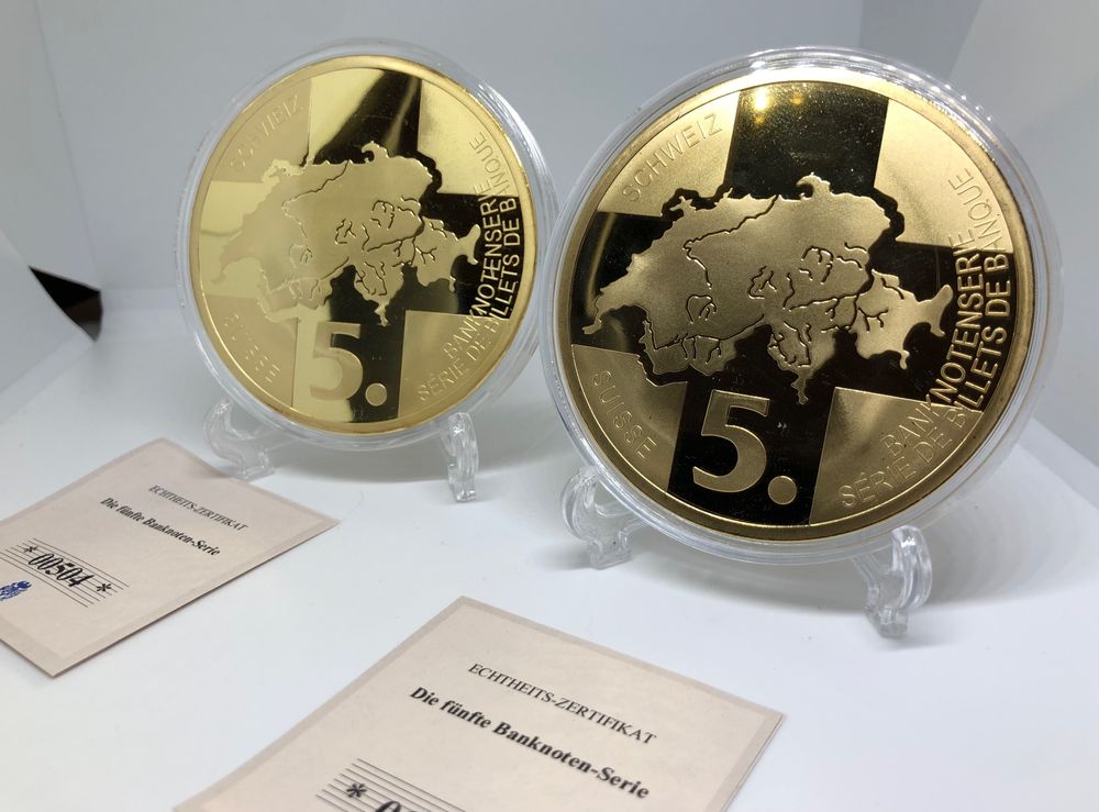 Set 6x BANKNOTE Médaille Vergoldet Ø 70 mm (D #39 occasion) à Hauterive NE