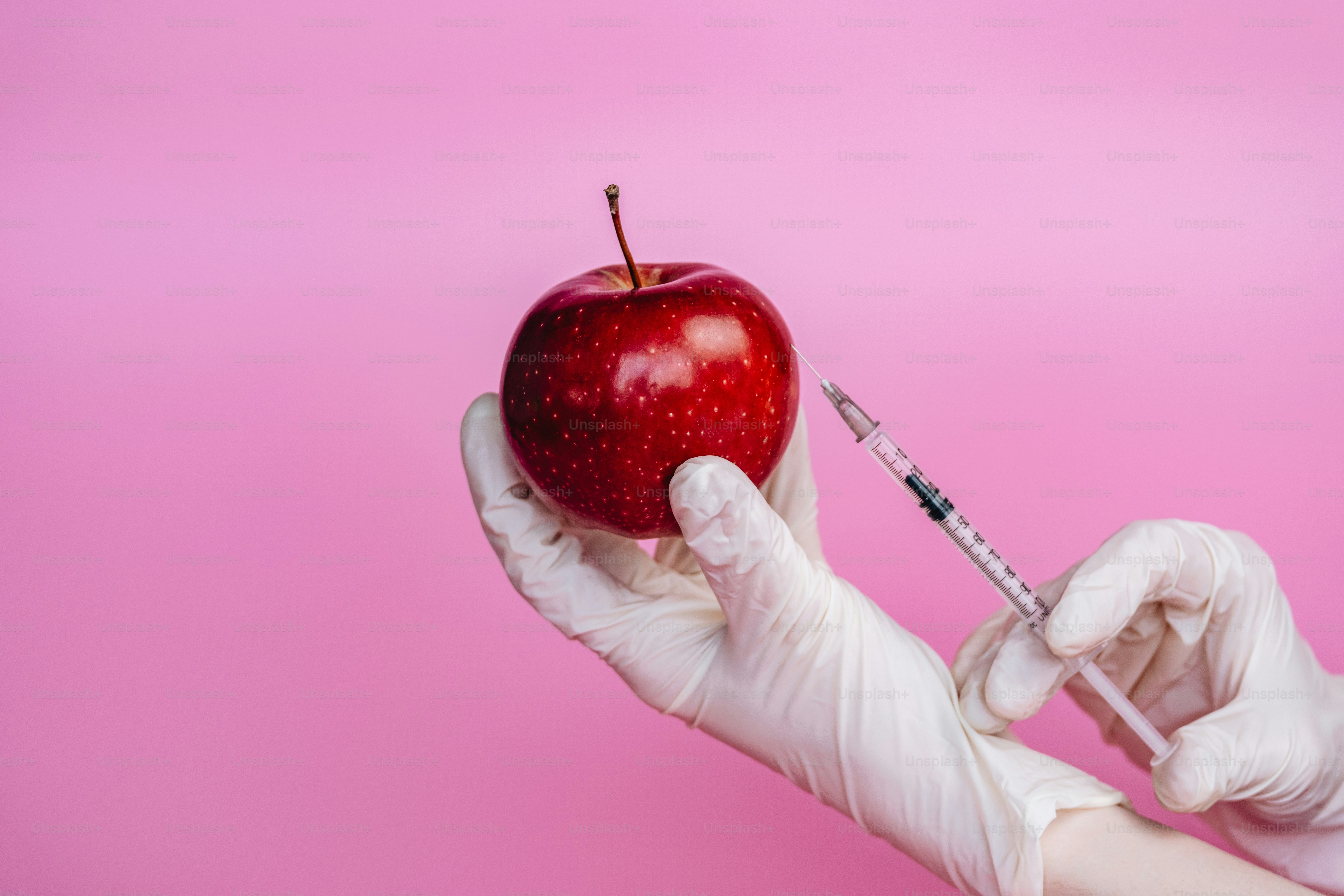 Someone is injecting an apple with a syringe photo Health Image on
