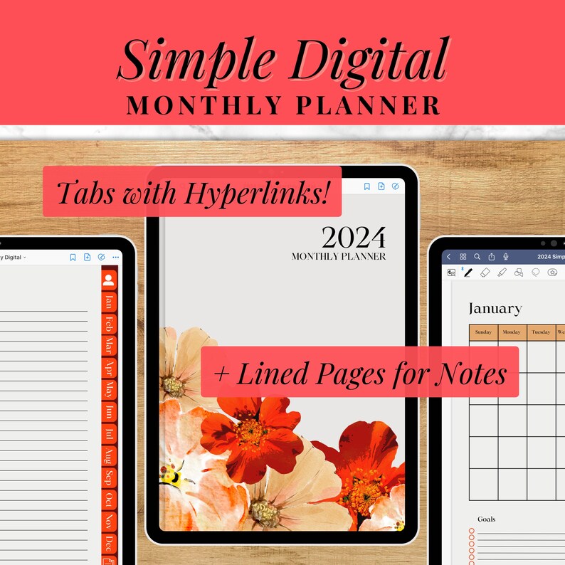 Monthly Digital Planner With Hyperlinks Compatible With Goodnotes