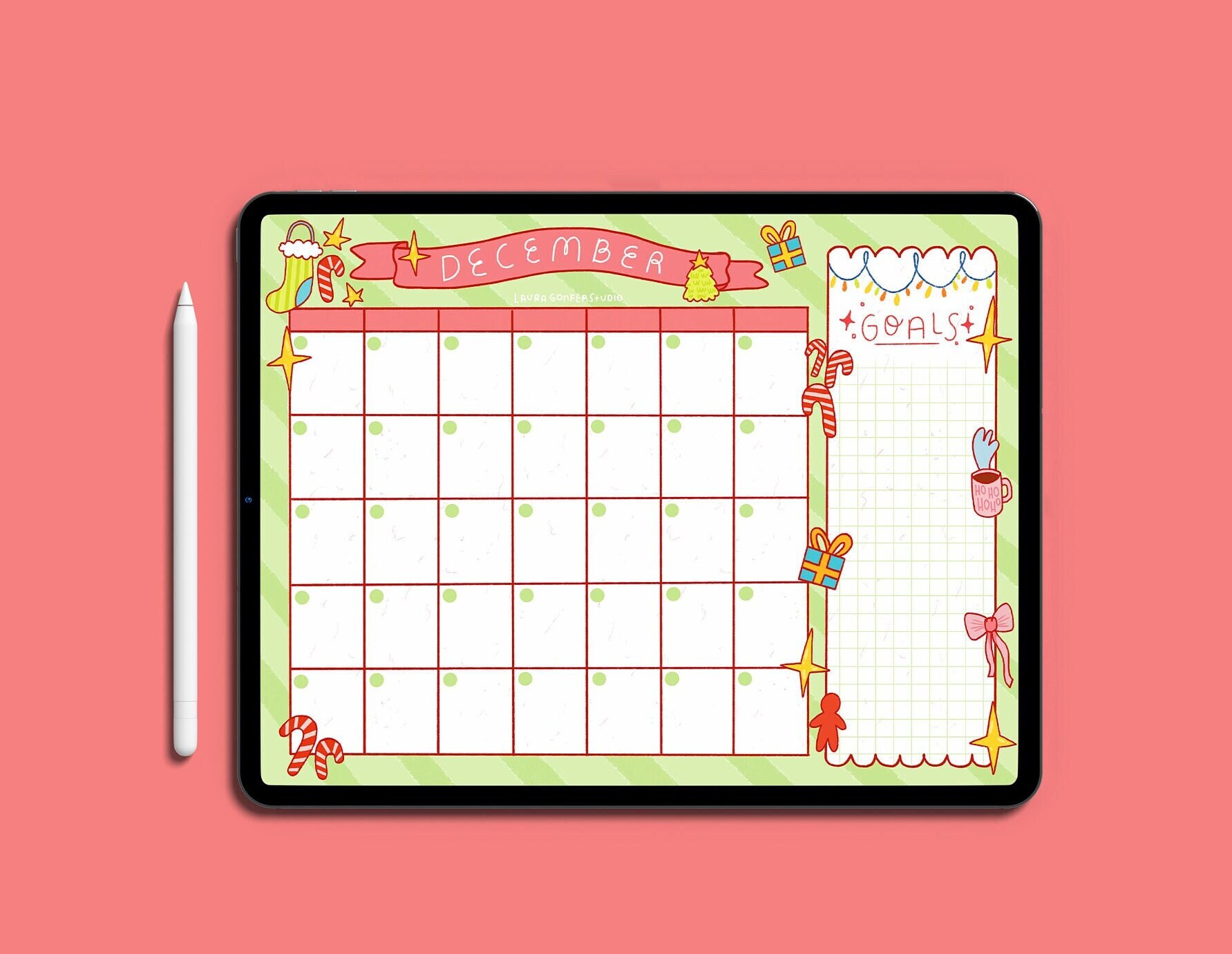 Christmas Digital Calendar / Cute Digital Calendar / iPad Calendar