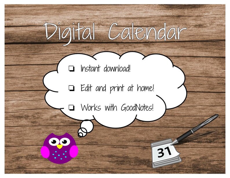 Digital Calendar iPad Calendar Digital Monthly Planner Goodnotes