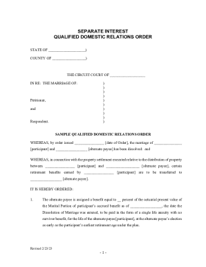 Qualified Domestic Relations ORDER (QDRO) Sample (PDF) secure acce