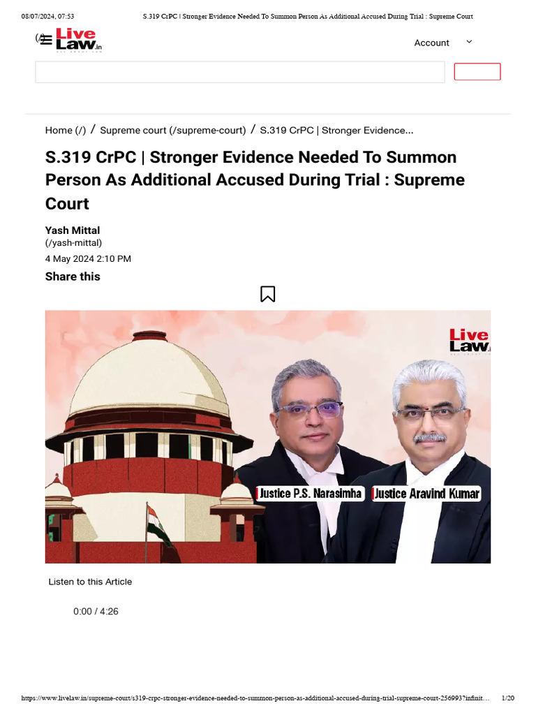 S 319 CRPC Stronger Evidence Needed To Summon Person As Additional