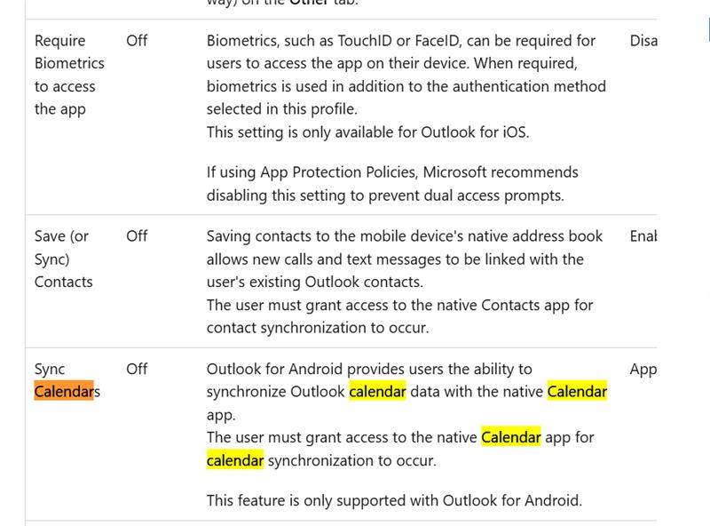 Synchronize calendar from outlook to ios calendar with MAM Microsoft Q A