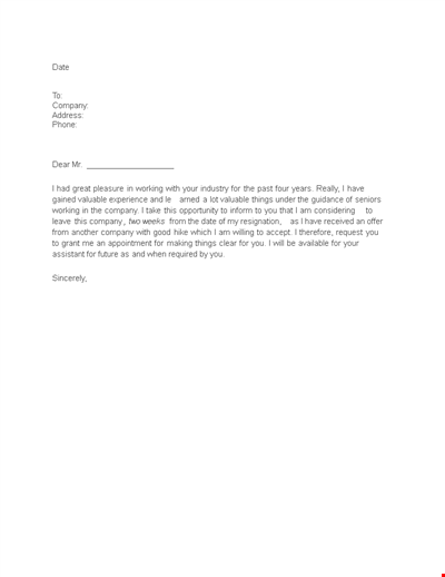 Free Sales Job Resignation Letter Template to Edit Online
