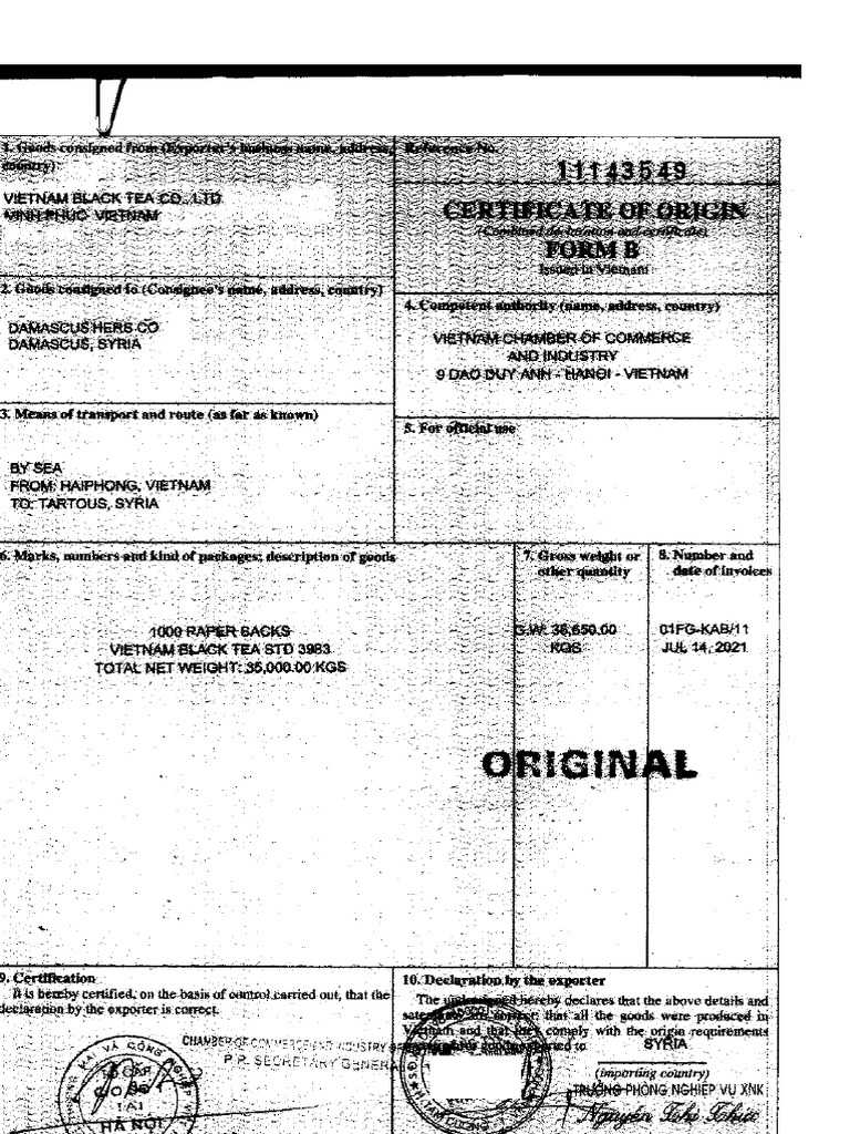 Certificate of Origin PDF Trade Water Transport