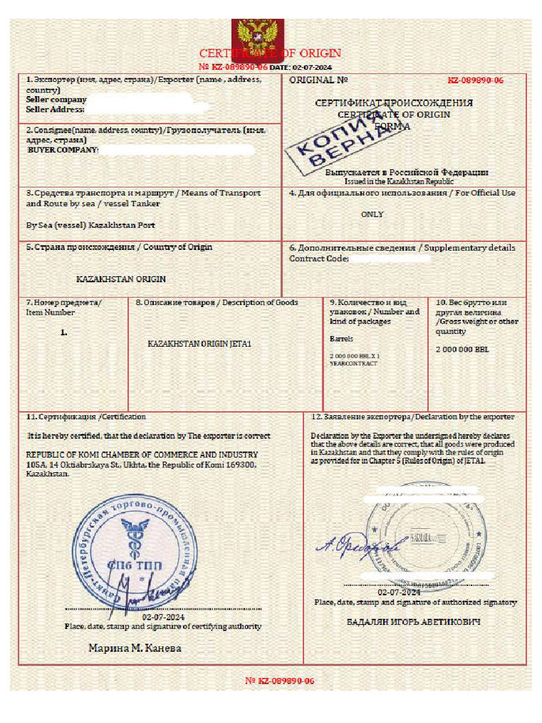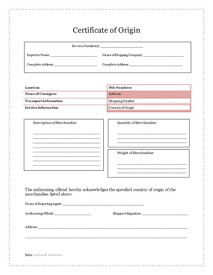 Certificate of origin in Word and Pdf formats