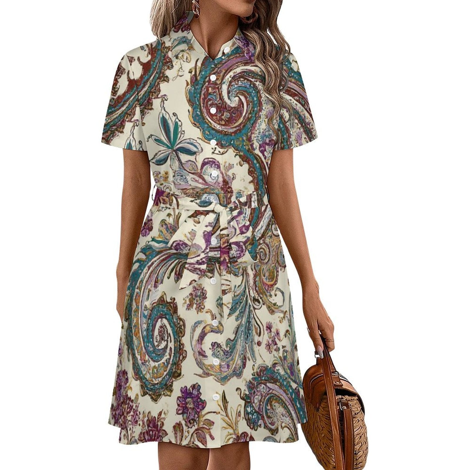 Cream Paisley Floral Textile Womens Shirt Dresses Women #39 S Short Sleeve