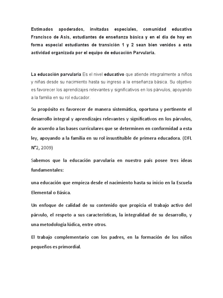 Discurso Dia Del Parvulo PDF