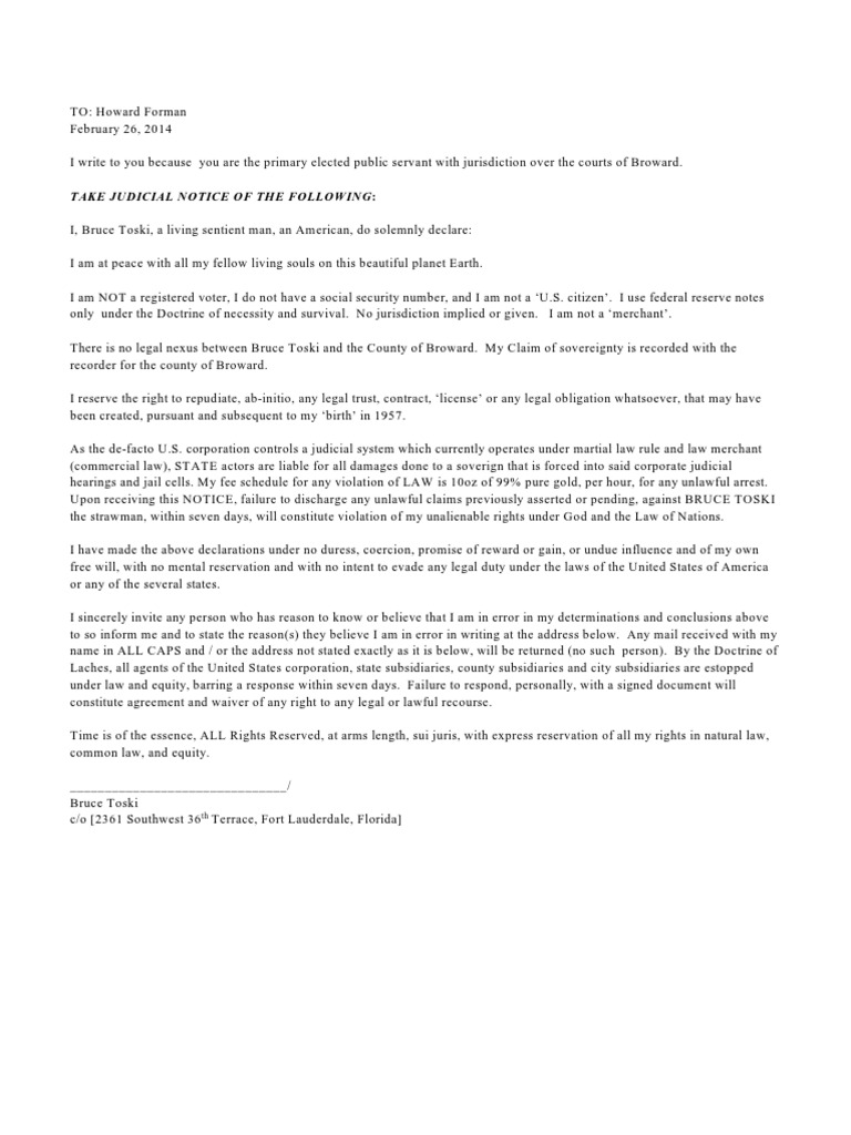 Notice To Howard Forman Clerk Court Broward Florida PDF Natural And