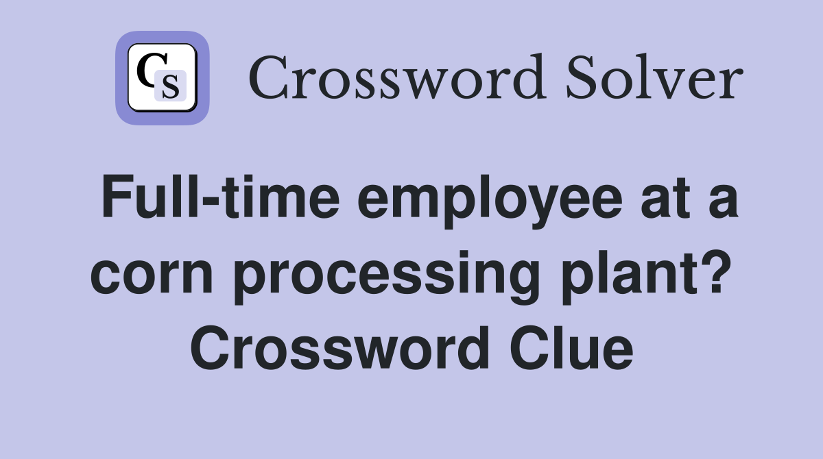Full time employee at a corn processing plant? Crossword Clue Answers