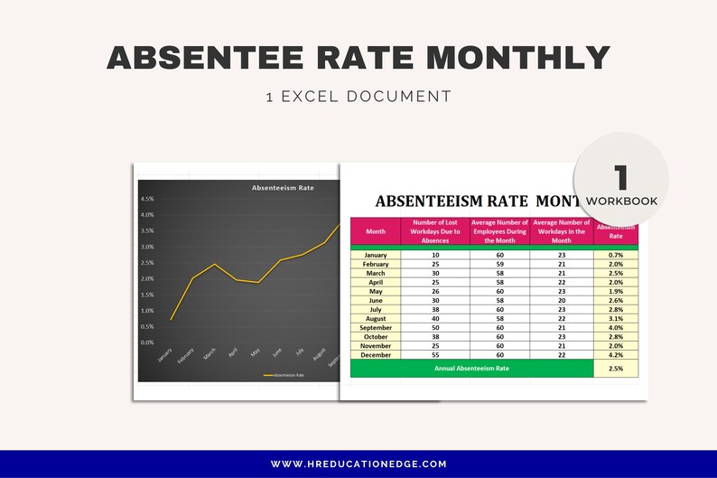 Employee Absenteeism Monthly % HR Excel Spreadsheet Absentee Tracking